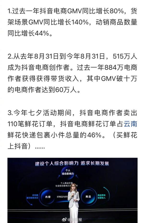 抖音电商魏雯雯:近一年平台GMV增幅超80%,售出商品超300亿件