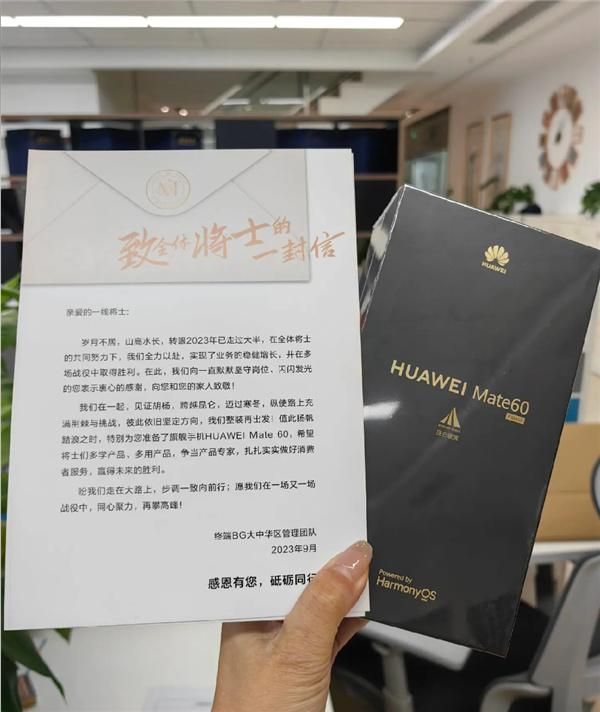 除了这封感谢信,员工的礼品还包含一部全新的华为Mate60手机、有6个月饼礼盒、茶壶套装以及几包茶叶等。保守估计,这些礼品价值最低也得在六七千元左右,不得不佩服华为对待员工真“豪气”,难怪员工们都愿意在华为发光发热。