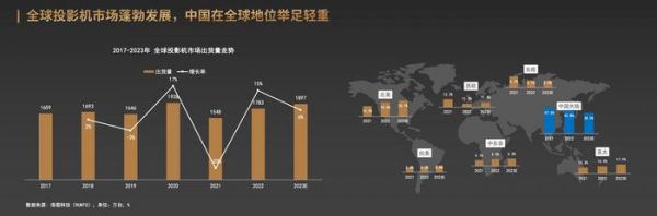 洛图科技的《中国智能投影产业发展报告》显示,2018年至今全球智能投影仪出货量整体呈增长态势,预计2023年出货量将达到1897万台,同比增长6%。从地区分布来看,中国市场一马当先,过去三年一直占据全球最高的市场份额。