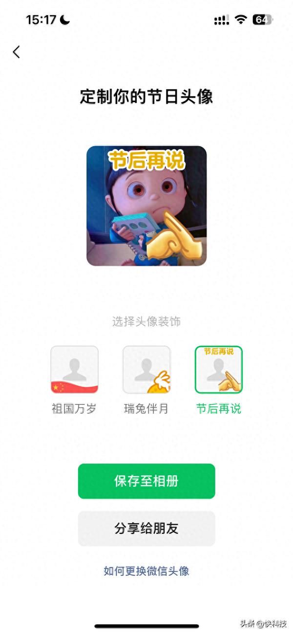 微信节日头像制作功能上线:三种风格 “节后再说”火了