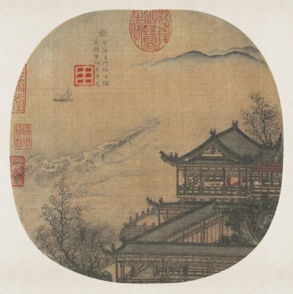 南宋画家李嵩的《月夜观潮图》描绘了临安(今杭州)中秋夜观海潮的情形。