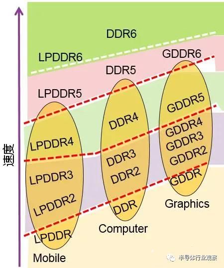 在发展过程中,按照应用场景,DRAM分成标准DDR、LPDDR、GDDR三类。JEDEC定义并开发了这三类标准,以帮助设计人员满足其目标应用的功率、性能和尺寸要求。