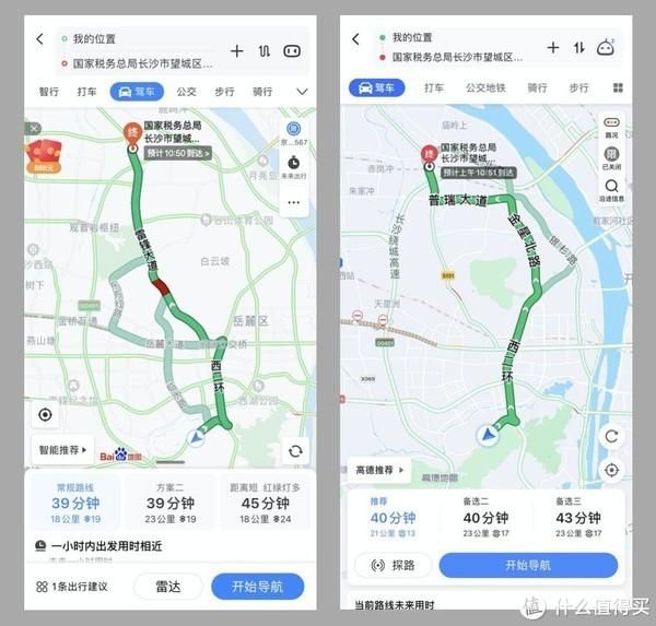 在不小心走错路的情况下,高德地图会及时重新规划,让你驶入备选路线,而百度地图更倾向于让你掉头,继续走之前的路线,这两种方式谁优谁劣,要看每个人的喜好了。