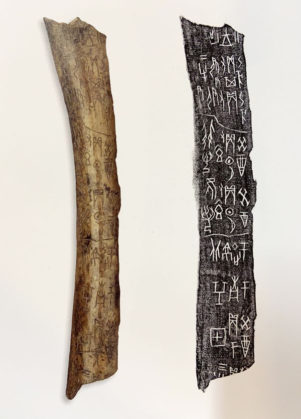日月食卜骨及其卜辞,中国国家博物馆馆藏。卜辞记录了商代晚期于两地接连发生了日月食,卜问此天象是否吉利。