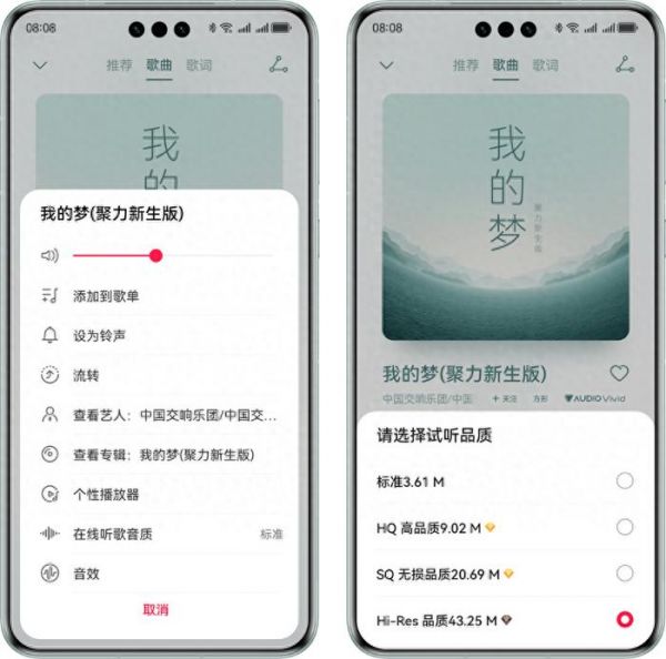 华为音乐Hi-Res曲库在古典、爵士等传统流派上的优势大家肯定已经知道了,这次在流行内容上进一步扩充,真正实现了“遥遥领先”!如果现在你想听听这些宝藏音乐,打开华为音乐APP,点击带有金色Hi-Res小图标的歌曲进入播放页,在音质选项中选择“Hi-Res品质”即可体验啦!火爆全网的发布会开场曲《我的梦(聚力新生版)》也在华为音乐独家首发,同样支持Hi-Res!