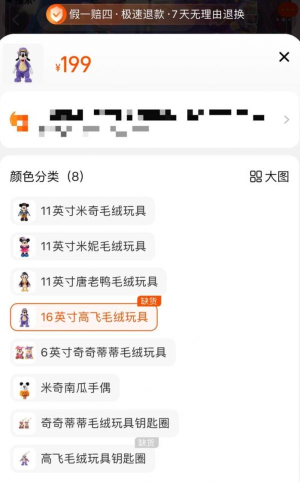 一位不愿意透露姓名的网友告诉记者,自己9月26日去上海迪士尼乐园,希望能购买“紫龙高飞”商品,然而大约中午就已断货。