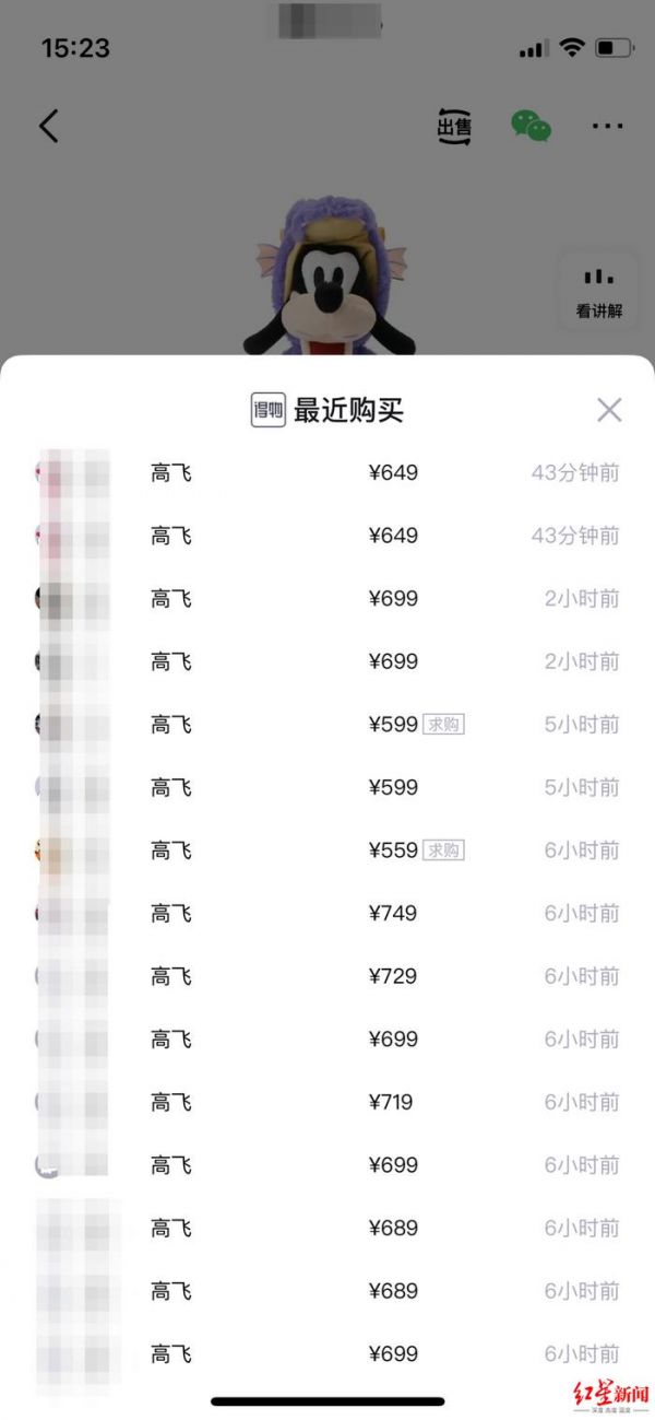 ▲网友爆料有人8000元出售“紫龙高飞”毛绒玩具网友:发售当天中午已缺货,