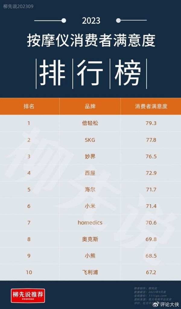 按摩仪大乱斗升级!满意度公开:小米排第6,国产三强格局已形成