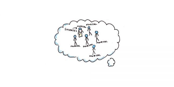 要检验一个三段论,“所有人终有一死,苏格拉底是人,因此苏格拉底终有一死”,我们想象一群人,他们都终有一死,并想象苏格拉底是他们中的一员。通过这样的检验,我们推断这个三段论是正确的。