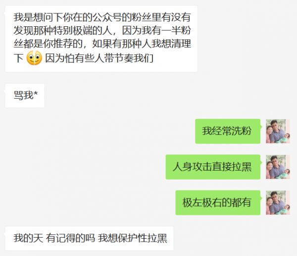 对于这个问题我想得很开,我这个公众号里的内容都写得问心无愧,一不传谣二不煽动,因此我一直都很有自信不会炸号。