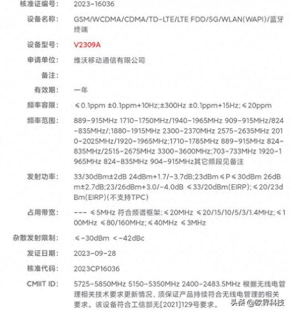 【品牌】vivo新机入网 暂时不排除是vivo X100的可能性