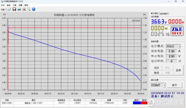 冷却后放电测试,以0.5c的倍率放电,仅放放出了547mAh容量,压降非常大。