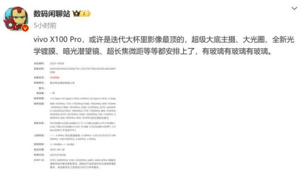 【品牌】vivo新机入网 暂时不排除是vivo X100的可能性