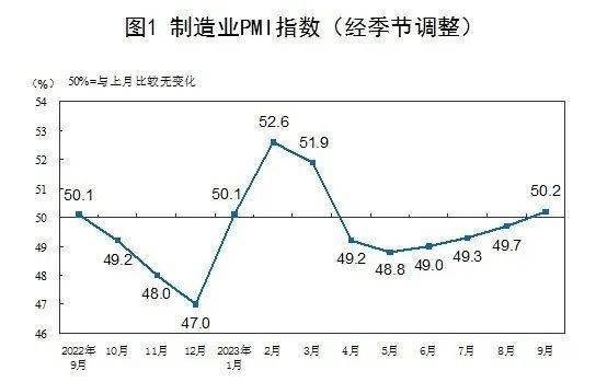 9月30日,国家统计局发布的《2023年9月中国采购经理指数运行情况》显示,我国9月份,制造业采购经理指数(PMI)为50.2%,比上月上升0.5个百分点,时隔5个月重返扩张区间。与此同时,9月份,非制造业商务活动指数为51.7%,比上月上升0.7个百分点,一举扭转了此前连续五个月的回落势头,显示非制造业扩张力度有所增强。