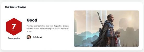 IT之家 10 月 2 日消息,加里斯・爱德华斯全新动作、科幻片《AI 创世者》于 9 月 29 日在北美上映,目前各大平台的打分已经公布,豆瓣 6.5、IMDB 7.3,Metascore 均分 63,口碑不是很理想。
