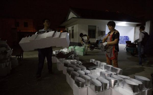 凌晨3点,孙小蟹的工厂已灯火通明,100多位员工手指翻飞,熟练地抓起张牙舞爪的螃蟹,扎蟹、打包,送上7点的顺丰物流车,这样才能让蟹及时搭上飞机运往全国、在48小时内送到消费者手中。如此高强度作业要持续到晚上9点,一天送出1万多个订单。