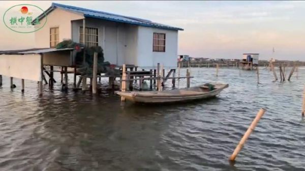 湖边简易搭建的棚子