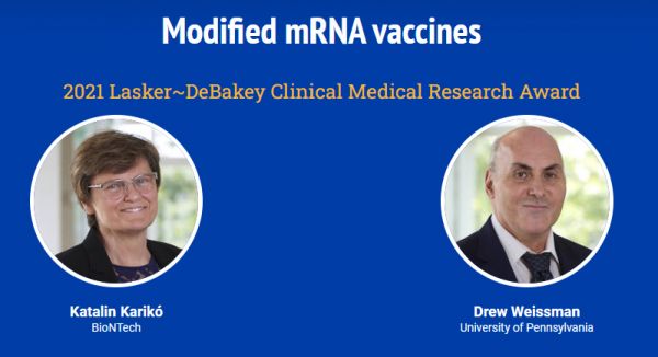 ▲Katalin Kariko博士(左)和Drew Weissman博士(右)(图片来源:参考资料[1])