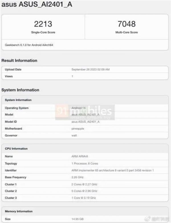 其中单核2213分,多核7048分,多核超越A16芯片约10%,相较于骁龙8 Gen2,单核提升9.7%,多核提升24%。