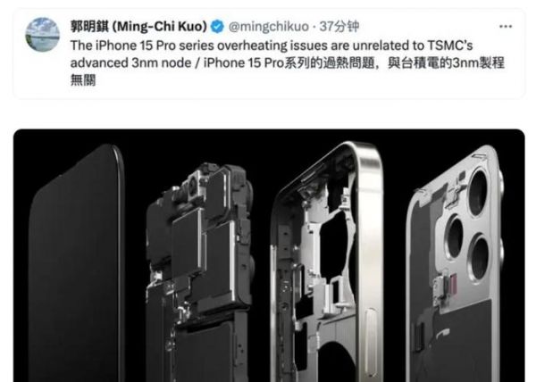 不过就在外界对台积电3nm工艺是否成熟稳定而议论纷纷的时候,知名分析师郭明錤却站出来表示,iPhone 15 Pro系列发热与芯片无关,是苹果手机的散热问题。