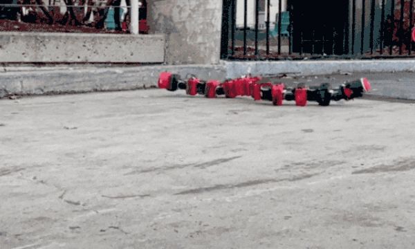 除了蛇身可以扭动前进之外,蛇式的设计还可以让机器人直接卷曲成一个螺旋和直接形成一个轮式的样式,在斜坡上能更快地下滑。