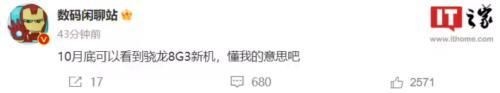 起初有消息称,首批骁龙 8 Gen 3 旗舰将在 11 月底问世,但后来又提前至双 11 左右,最新爆料更是表示,10 月底就能见到。