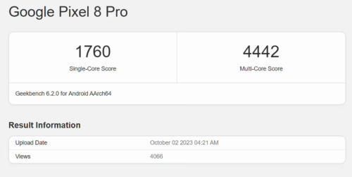 目前,Pixel 8 Pro 版已经现身跑分平台 Geekbench 6,显示其单核得分为 1760,多核得分为 4442。
