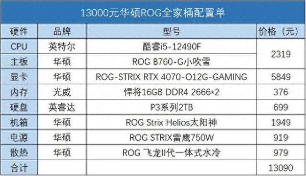 首先还是板U套装,12700K去配B760当然不合适,CPU不锁倍频却配一个不能超频的主板,这就有点浪费了,华硕全家桶建议还是把显卡的性能拉起来,12700K配3060真的不合适,建议选12490F和小吹雪的套装,整体性能仍然强悍。
