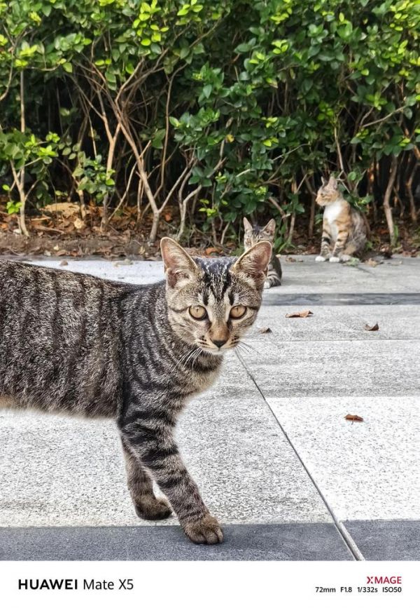 这一路走走停停,随停随拍。还真别说,让阿知记录下不少或闲适、或精彩、或有趣的瞬间。街上有跟阿知一样溜溜达达的外地游客,顺手对焦+按下快门,一张丝滑立体的生活向抓拍就成了,不愧是风驰闪拍,抓拍总是能快人一步。街边的老式建筑也极具特色,成片里建筑细节和云层纹理都很清晰,华为Mate X5的搭载 5000 万像素超感知主摄,1300 万像素超广角摄像头的实战表现也是可圈可点。偶遇几只狸花哈基米,在微距镜头下更显灵气十足。