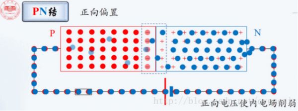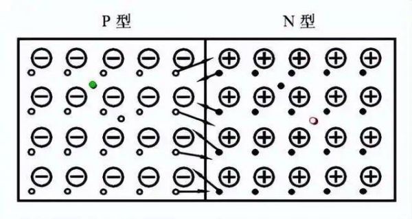 如果把P型半导体和N型半导体结合在一起(简称PN结),那么电子就会从N向P扩散。