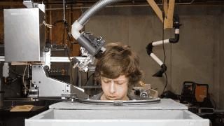 学会了“剪”,机器人还需要学如何“做造型。”因此,Wighton 设计了一个平台,让这个机械臂不仅可以上下移动还可以围着头转圈,不过当你把头真的伸进去之后,看起来还是有点怪怪的。