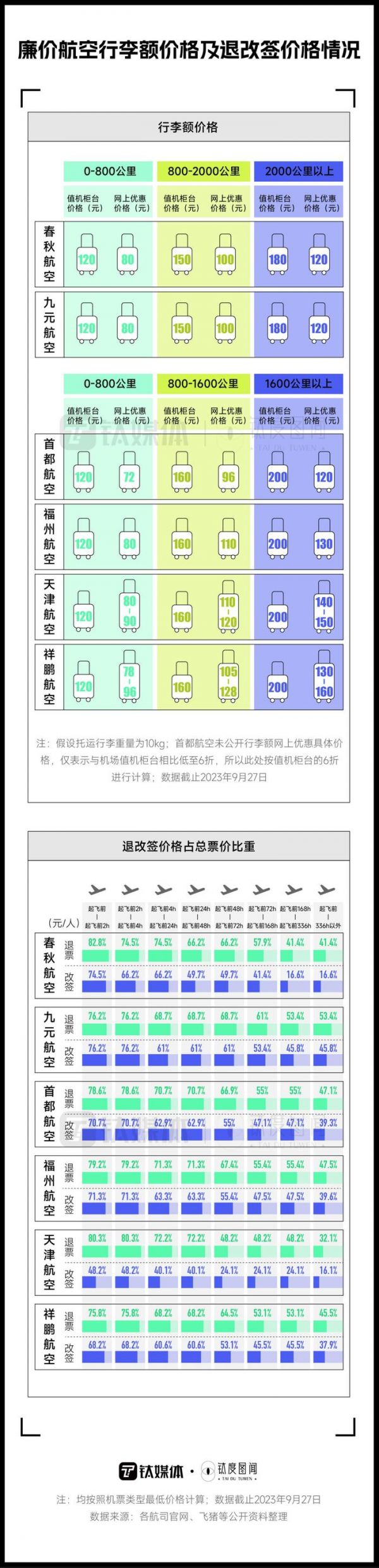 10kg行李收费200元,退票费最高达机票总价的83%