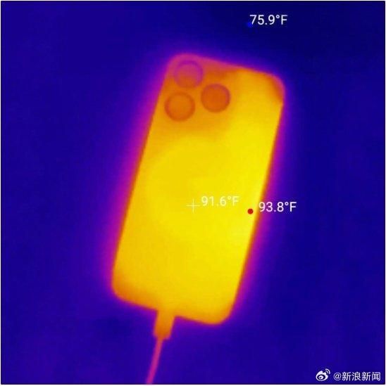 而在升级 iOS 17.0.3 系统之后,iPhone 15 Pro 和 iPhone 15 Pro Max 在充电状态下最高温度为 93.8 华氏(34.3 摄氏度),温度在 85-95 华氏之间。