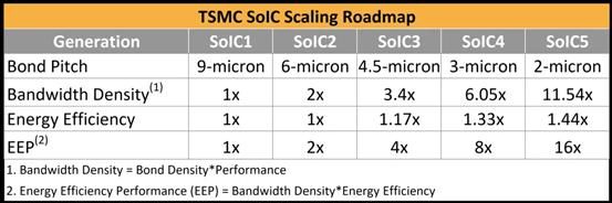 如台积电提出的SoIC 整合封装架构,其主要利用W2W 及C2W 的混合键合技术,实现10um 以下I/O 节点互连、减少寄生效应、并使芯片更薄等优势。