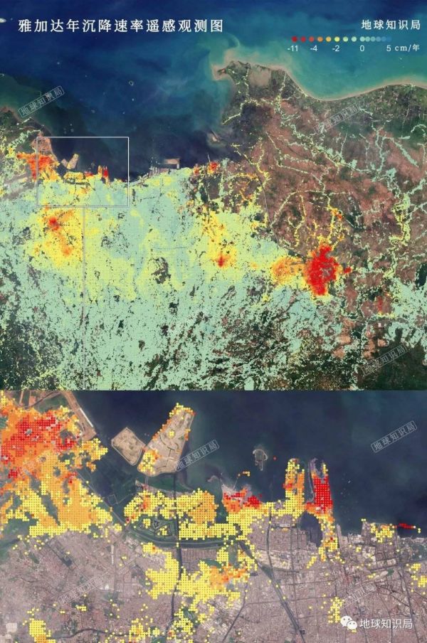 除此之外,东雅加达每年下沉10厘米,雅加达中部西区每年下沉2厘米,而南部地区则下沉1厘米。