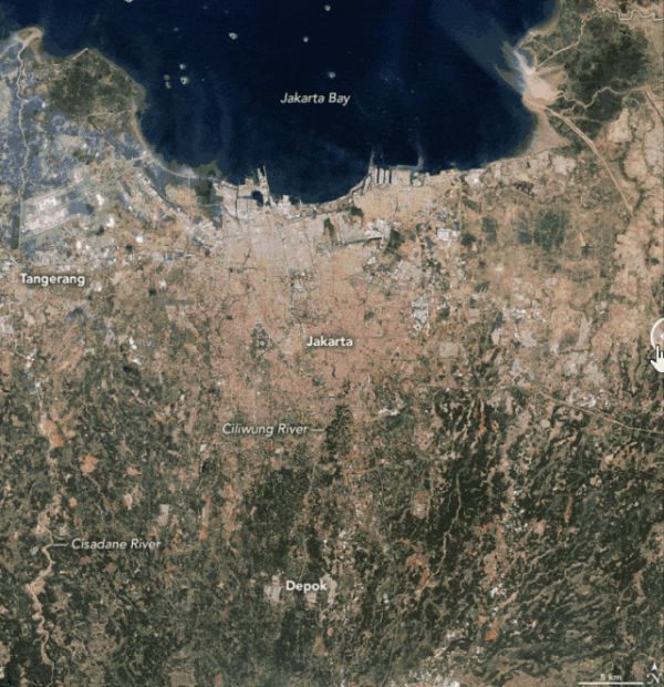 (1990-2019雅加达城区扩张 图:NASA)▼