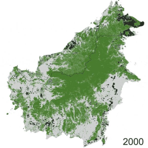 (不断减少的加里曼丹岛森林覆盖率 来源:CGIAR)▼