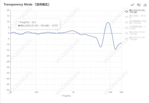 我们看到在中低频段,透传模式后的声压(声波通过媒质时,由振动所产生的压强改变量)几乎无变化。而在 2KHz 开始出现抖动,到 5KHz 剧烈抖动。证明没法很好地采集中高频段。