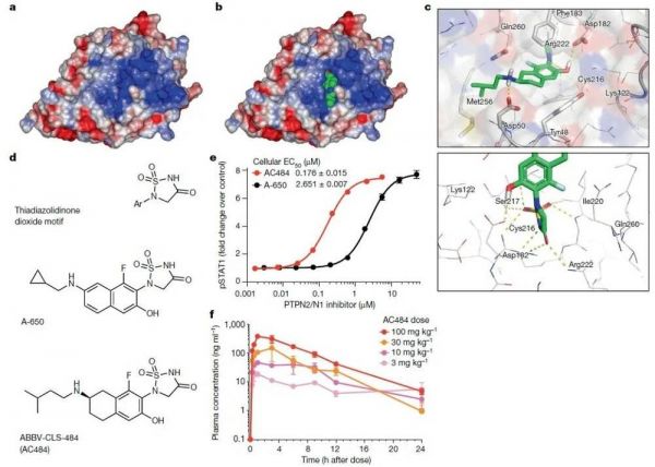 在最新研究中,艾伯维和Calico Life Sciences合作,他们解决了这个长期存在的难题。作者设计出一种能进入细胞并与PTPN2和PTPN1磷酸酶结合的小分子,即AC484。
