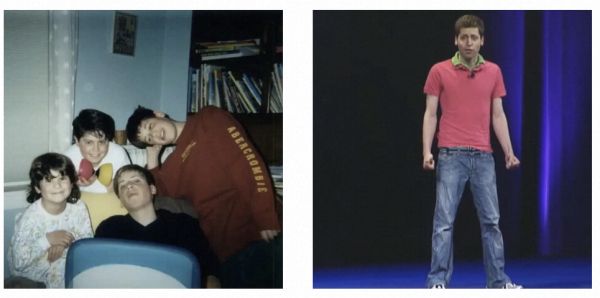 萨姆·奥特曼成长故事:左起:2000 年代,14 或 15 岁时与兄弟姐妹在一起。23 岁时,在 2008 年苹果 WWDC 上推广 Loopt。照片 安妮·奥特曼提供;CNET/YouTube。