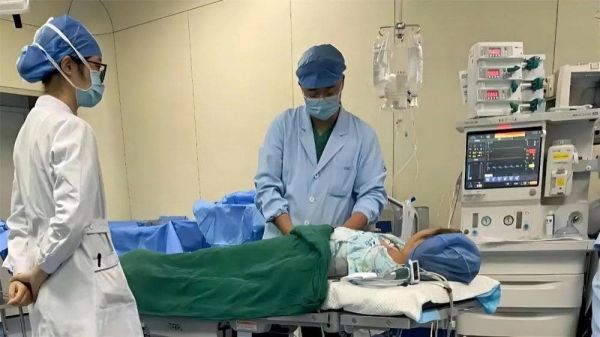 早上七点五十分,巡回病房手术室里,张京京打开心电监护仪,准备盐水和留置针,连好延长管、鼻饲管和气管,将镊子、剪刀和手套等手术用具摆放在推车上,等待主刀医生和患者到来。