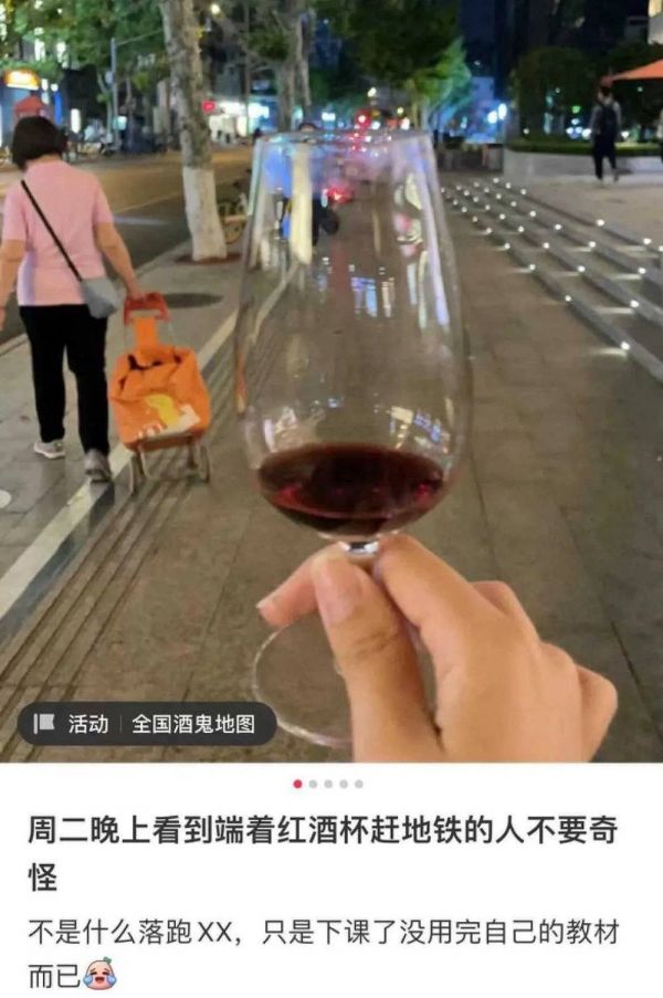 在社交网络上,说自己报上了夜校已经成为了一种凡尔赛,还有人晒出自己在夜晚的上海地铁摇晃着红酒杯的照片——那是红酒品鉴课的学员下课了。