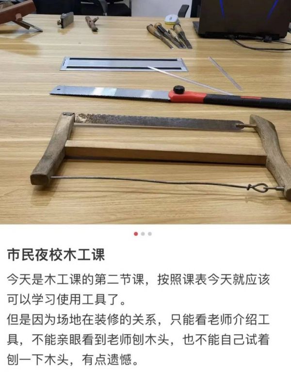 据富贵观察,在夜校里,占比最多的就是下班之后想陶冶点艺术情操的年轻女孩,26岁的橙子白天在办公室做文员,“工作比较枯燥,虽然上个夜校不能帮我转行,但给我展示了很多种可能性”。在木工课上,她不仅上手做了木盒子、小板凳这样的小物件,还顺带学会了如何分辨杉木、橡木、桦木,了解了明代家具的演变历史。