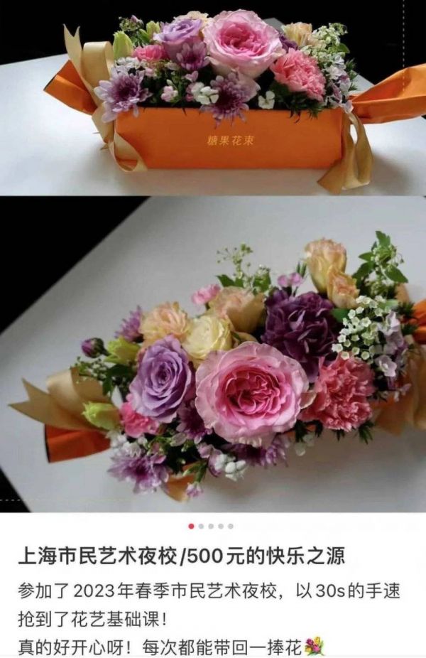 富贵以前也在其他机构上过插花课和健身私教,“但就是因为学费昂贵,感觉自己一部分钱花在了购买情绪价值上,结果一在夜校上课,还真有点不习惯,老师也不哄你了,也那些没有劝你续卡的话术了。”