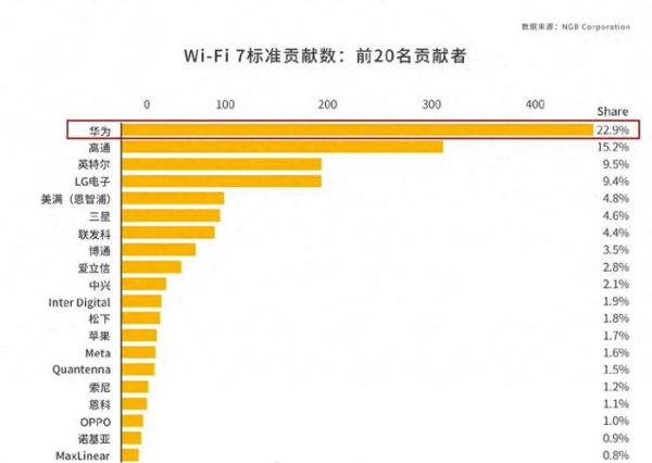 Wi-Fi 7标准专利Top20榜单出炉,华为中兴OPPO多家中国厂商上榜