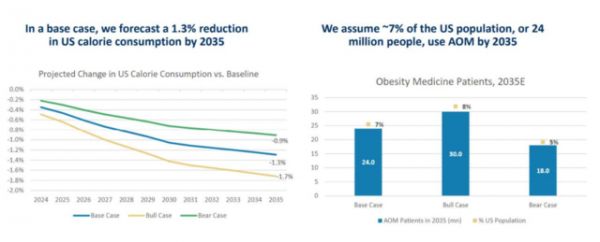 该报告指出,“鉴于减肥药物对降低食欲和卡路里摄入量的直接影响,偶氮甲烷(AOM)的摄入可能会在一个庞大的人口群体中推动广泛而持久的行为转变,而恰恰就是这个群体在食物消费中所占的比例最高。”