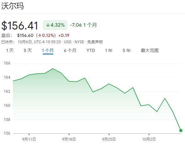 过去一个月沃尔玛股价走势(图片来源:谷歌)
