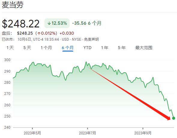 其实不光是上文提及的可口可乐和百事可乐,美国一些知名快餐连锁品牌近期的股价也受到冲击。截至10月6日收盘,麦当劳自今年6月30日的历史高点已经累计跌超15%。