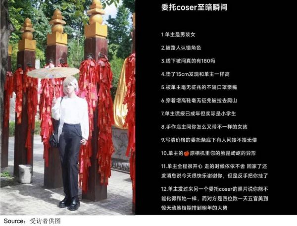 但做cos委托赚钱,有时也像小美人鱼踩在刀刃上一般疼痛。毕竟穿着10厘米的内增高,还要陪单主暴走,一天下来只会觉得自己的脚在扭曲尖叫。