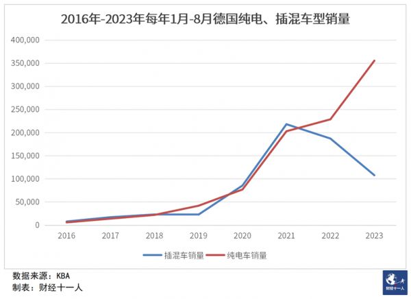很多分析认为市场突变的原因是2023年1月德国取消插混车型补贴,2022年底因为抢最后的补贴额度销量增长,2023年因为取消补贴所以销量停滞。